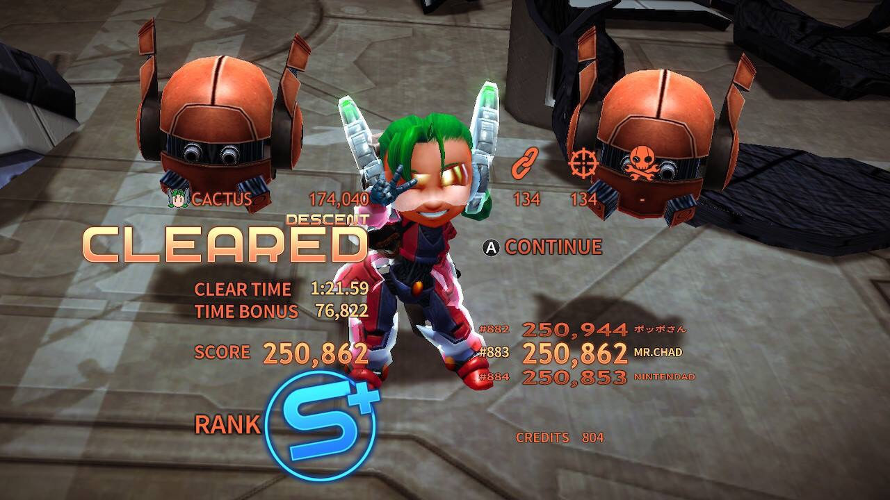 I was surprised with not just how easy it is to pick up and play, but also with how the game can be for either twin-stick experts or newcomers. Also, this game has a deep replayability factor, which makes the value skyrocket, along with rankings and online leaderboards that are going to make you battle harder and harder to reach the top. Each time you finish a level they will give you a grade, ranking from lowest to highest: D, C, B, A, S, S+. But getting that S+ isn’t going to be easy. Not at all! You have to chain attacks and kills together over and over without messing up once and not being knocked down.